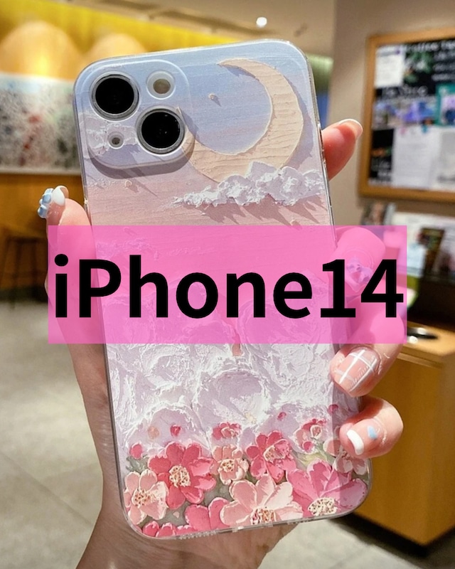 【在庫処分セール‼️】 iPhone 14専用 三日月と青空、花のデザインTPUケース