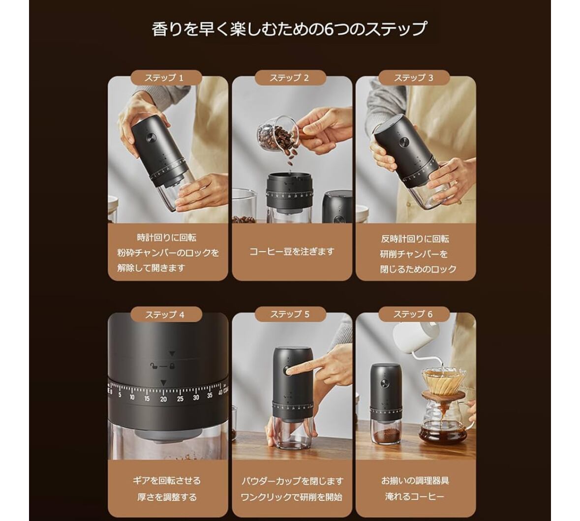 電動コーヒーグラインダー、DERGUAM 更新モデル充電式コーヒー豆グラインダー、ポータブル小型コーヒーグラインダー、0~40の精密な厚み調整1800mAh 自動コーヒー豆の屋外と屋内のために(ブラック) | Runarira-ルナリラ-fashion