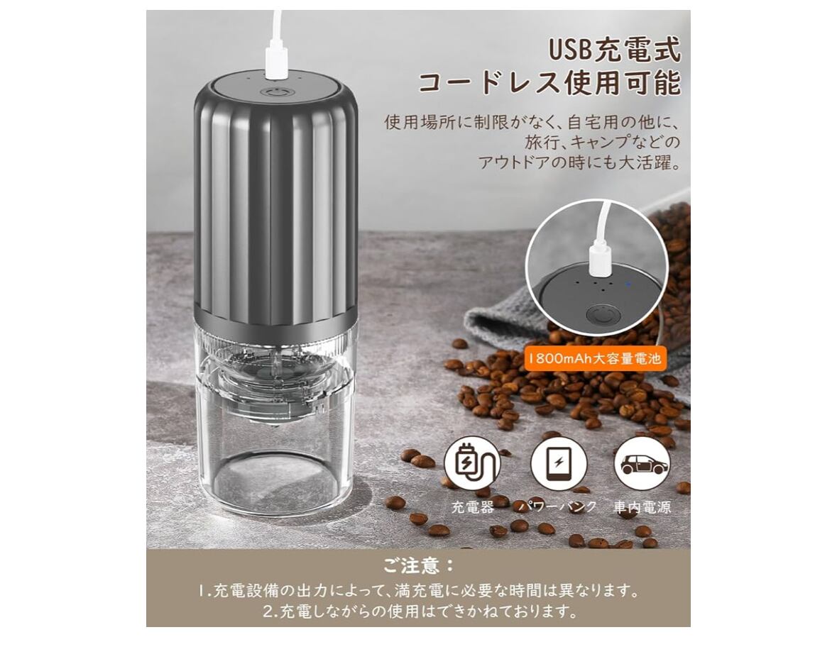コーヒーミル 電動 Nuovoware 電動式コーヒーミル コーヒーグラインダー コーヒー豆挽き器 粉末 挽き目調整可能 USB充電式 ワンタッチ操作 コンパクト 軽量 お手入れ簡単 水洗い可能 セラミック刃 詰まり感知 静音 均等に挽く エスプレッソ ドリップ式 グレー | Runarira-ルナリラ-fashion