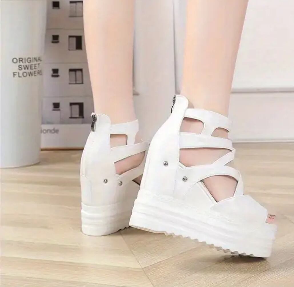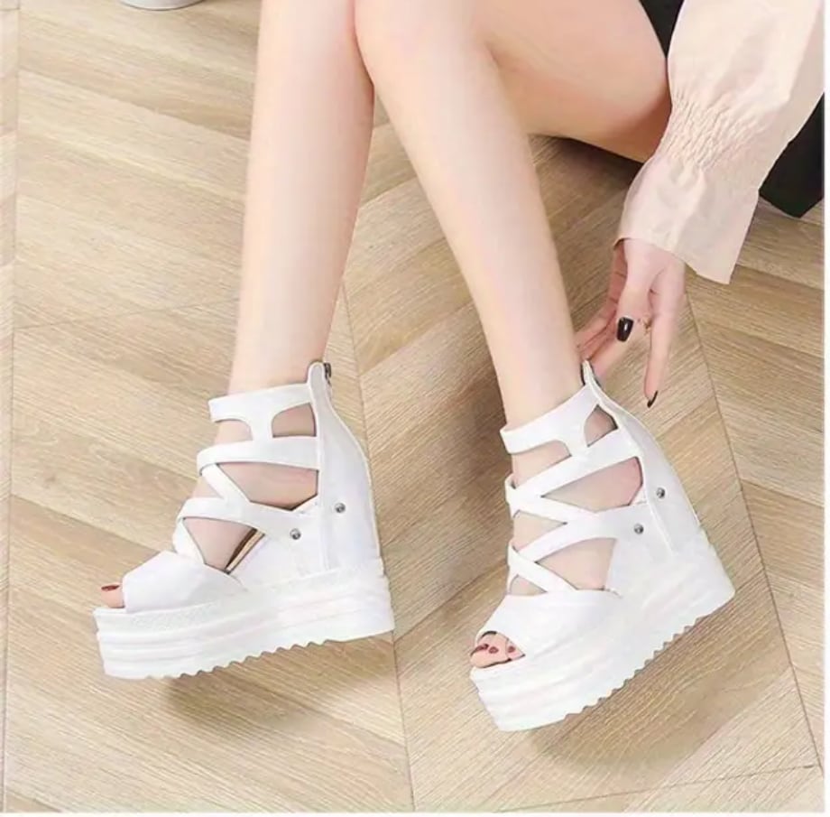 * 上品な厚底ウェッジヒール: 脚長効果が期待できるウェッジヒールは、スタイルアップを叶え、自信あふれる後ろ姿を演出します。
