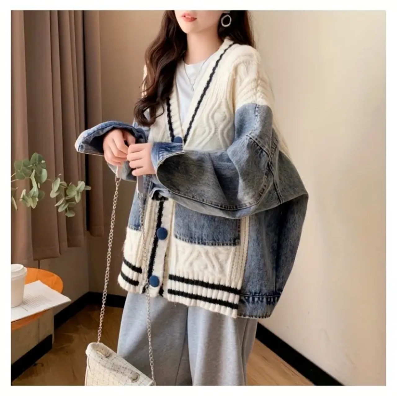 秋冬の定番アイテムに、ひねりの効いたデザインをプラス。異素材のデニムパッチワークが目を惹く、個性的なカーディガンです。ゆったりとしたオーバーサイズシルエットで、リラックス感のあるおしゃれを楽しめます。