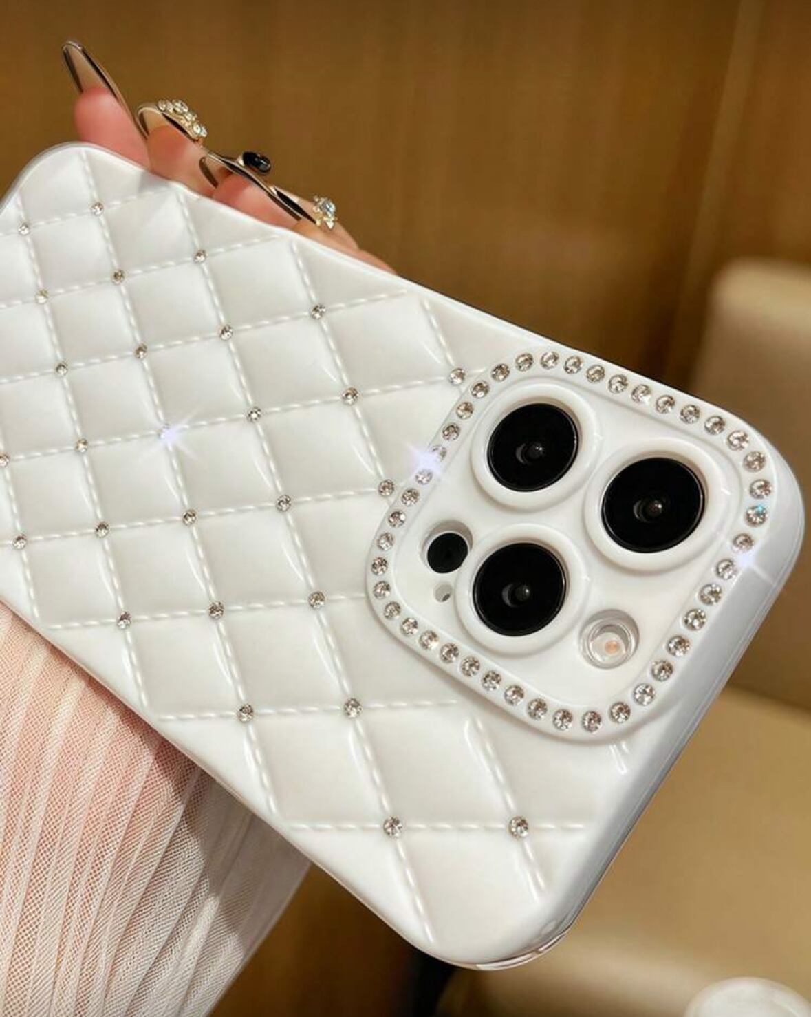 iPhone 12Pro専用 ラインストーン・ホワイト キラキラiPhoneケース