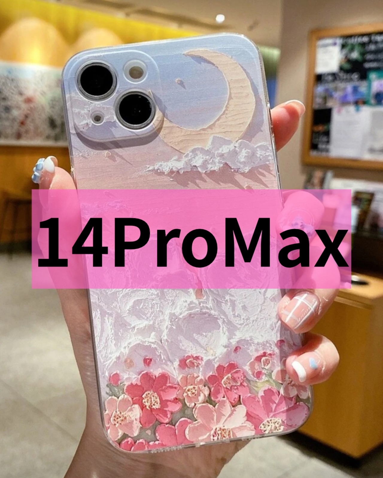 iPhone 14 Pro Max 夕焼け空と花のデザインTPUケース