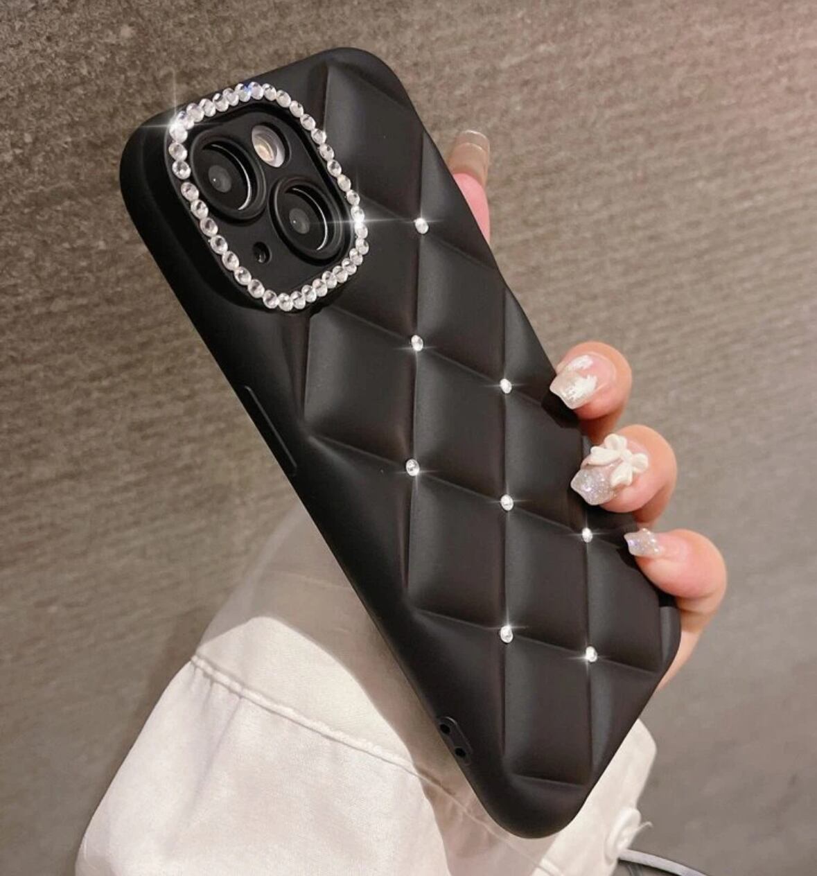 • シックなブラックの格子柄(ダイヤ柄)ケースに、繊細なラインストーンをデザイン。
