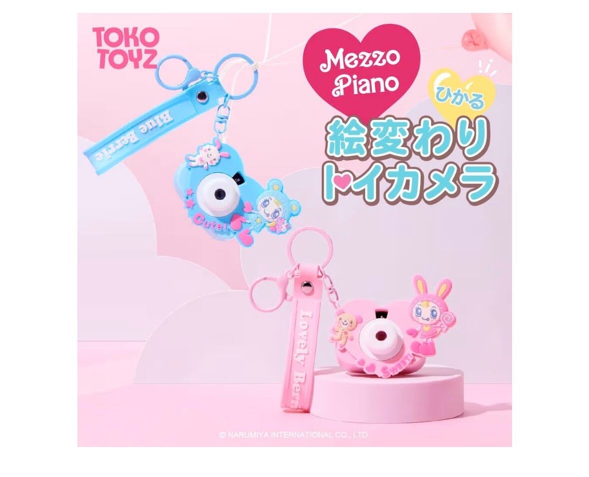 シャッターボタンを押すと、中の絵柄がカシャッと切り替わるユニークなトイカメラ。メゾピアノの愛らしいイラストが投影され、遊ぶたびにワクワクが広がります。おしゃれなデザインで、遊んでも飾っても楽しめるアイテムです。