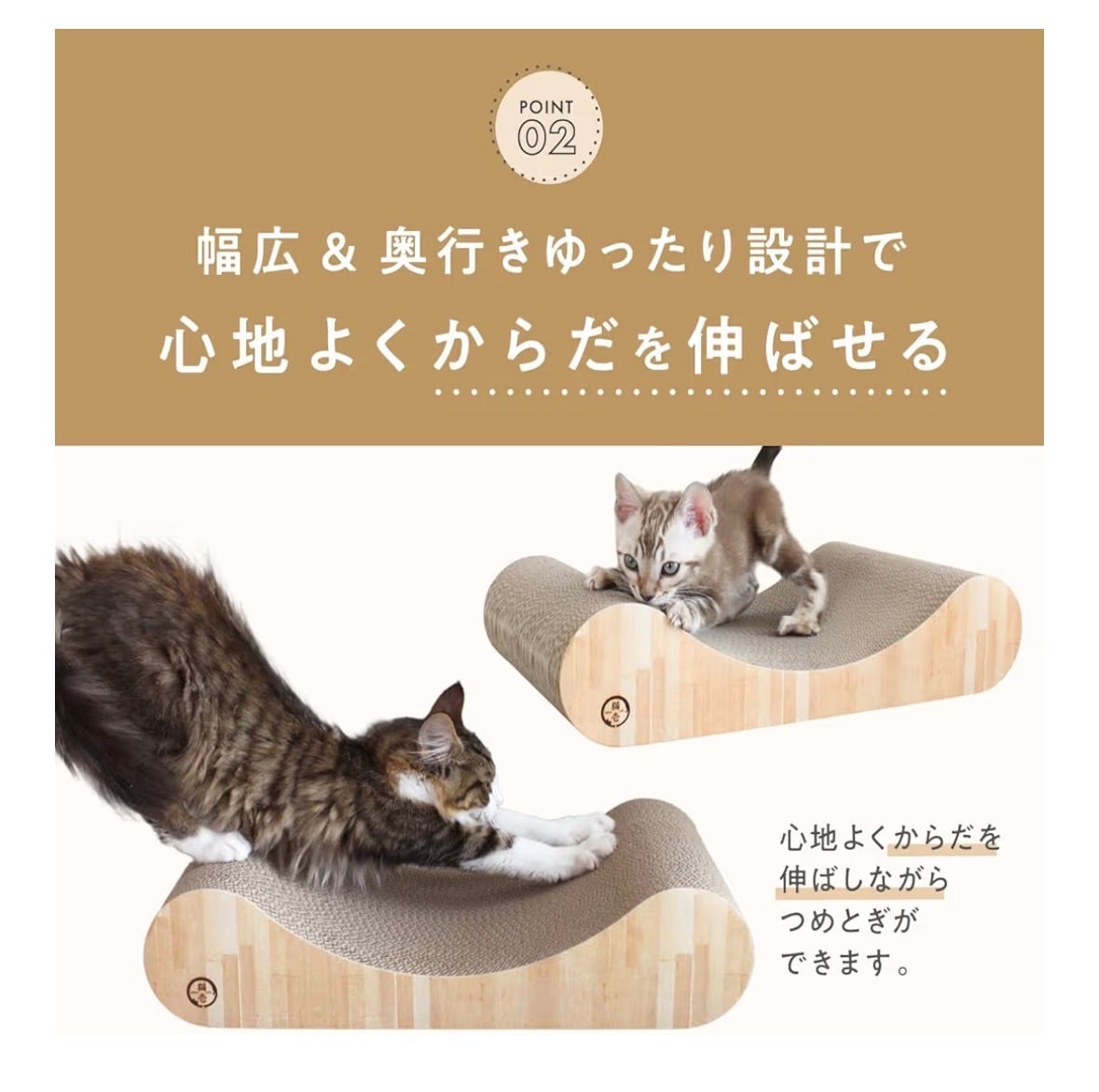 【高密度ダンボールで長持ち】ダンボールは薄いダンボールを貼り合わせています。 薄いタイプを使用することで密度が高くなり、猫のとぎ甲斐アップだけでなく、耐久性も持たせています。 ダンボールの目が潰れたり、柔らかくなってきましたら、新しいつめとぎに交換してあげてください。