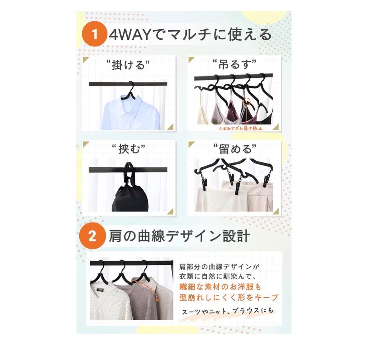 【4wayで多機能に使える】取り外し可能な洗濯ばさみ付きのピンチハンガーなので、“掛ける”“吊るす”はもちろん、ハンガーで“留める”、ハンガーを折り畳んで”挟む”ことも可能な4way仕様。