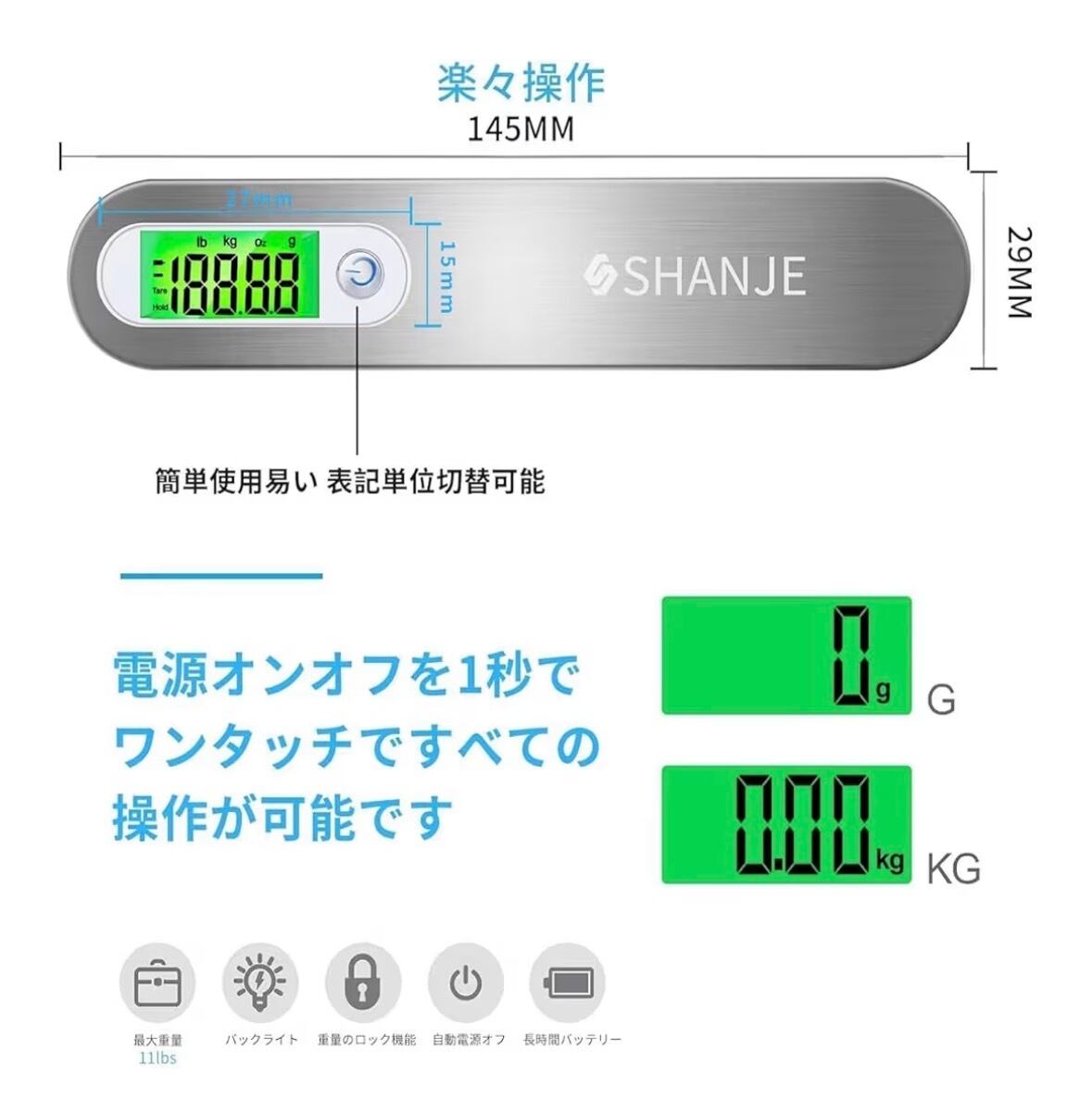 【広範囲】デジタルはかりはいつでも、どこでも荷物の重さを測定できます。吊り下げ式のスケールはスーツケースなどを簡単に測れます。旅行、アウトドア、つり、ショッピング、家庭用などに役立ちます。shanjeストアからご購入される場合、メーカーの1年間保証が付いています。1年保証期間内の故障は、当社に連絡を下されば責任を持って対応致します。