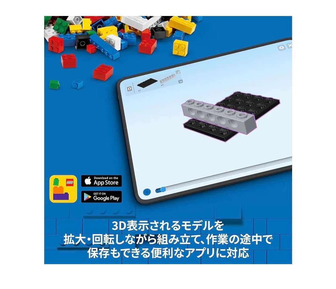 インタラクティブな組み立て説明 – ご自宅にあるセットをデジタルコレクションにできるLEGO Builderアプリは、3D表示されたモデルをズームや回転させながら組み立て、作業途中で保存していつでも再開できます