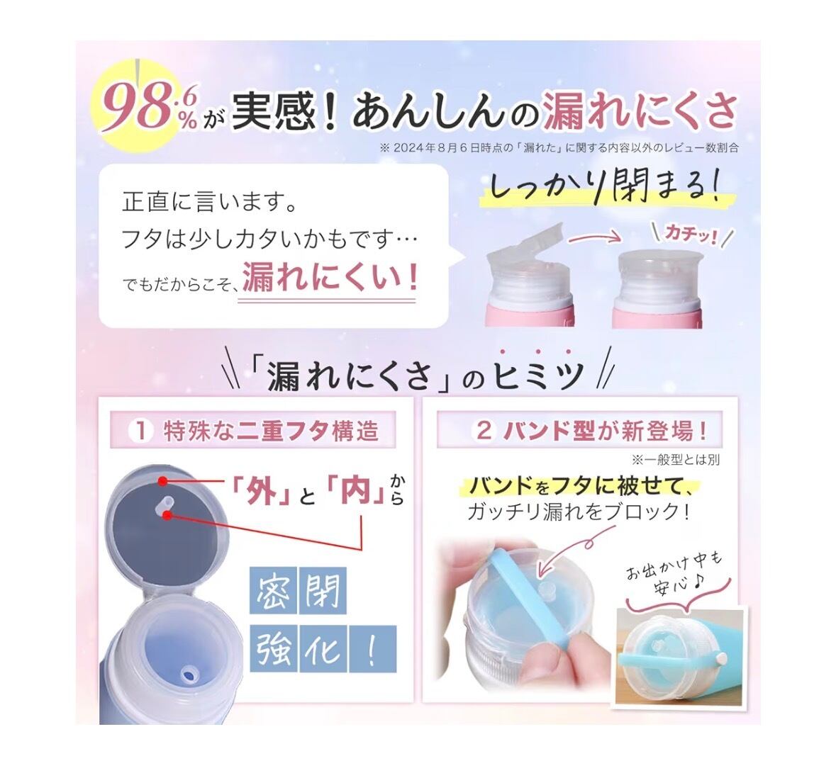 ✅【⭐もう、漏らさない⭐】 旅行用の小分けボトルで一番不安なのは「漏れ」ですよね。 TAYOTTEの トラベルボトル は、最先端の二重フタ構造で液体の漏れをしっかり防ぎます。また蓋と本体が一体型になっているため、 シャンプー やリンスなどあらゆる液体の漏れをブロック。お出かけには欠かせない 旅行グッズ です。