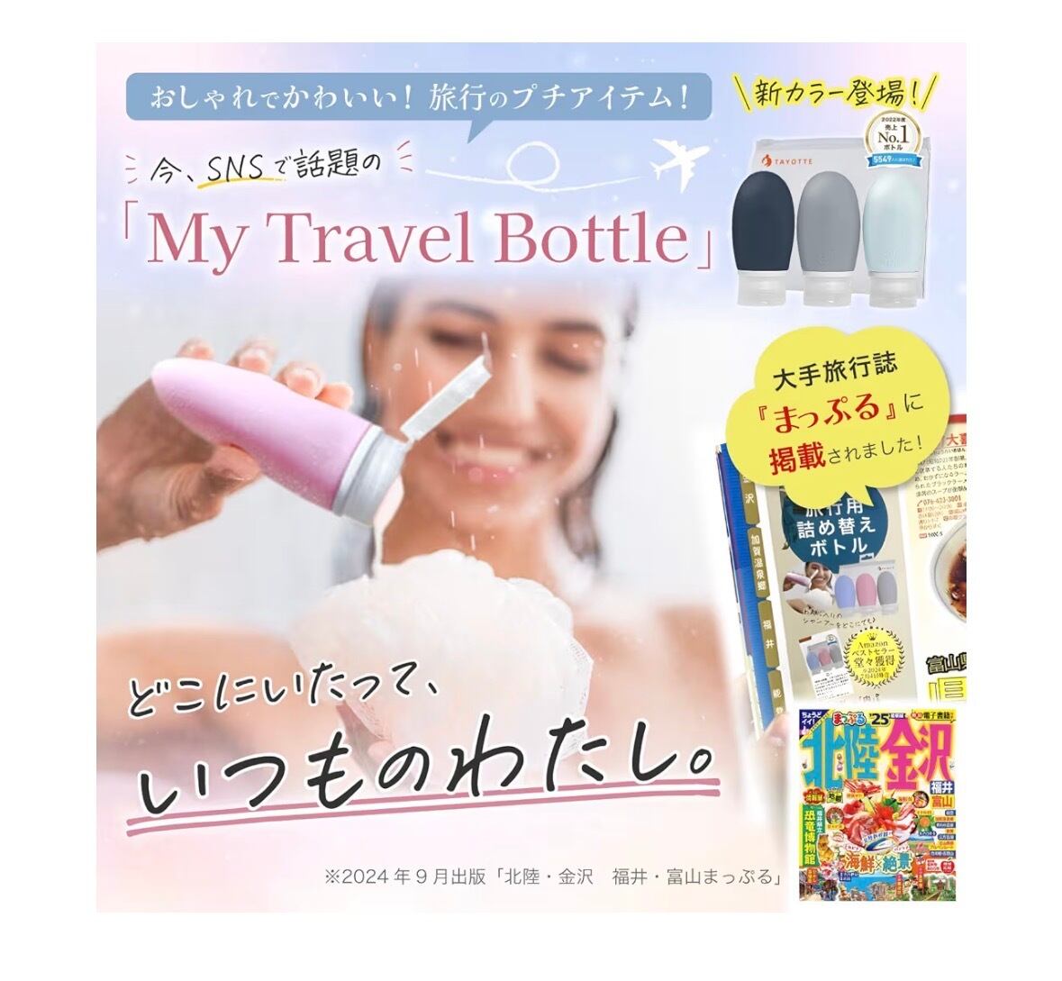 【2024年まっぷる掲載】 トラベルボトル シャンプーボトル 旅行用 『たった20秒で瞬間つめかえ』 トラベルセット 詰め替えボトル [TAYOTTE] (60ml、90ml3個セット, 漏れ防止バンド付)