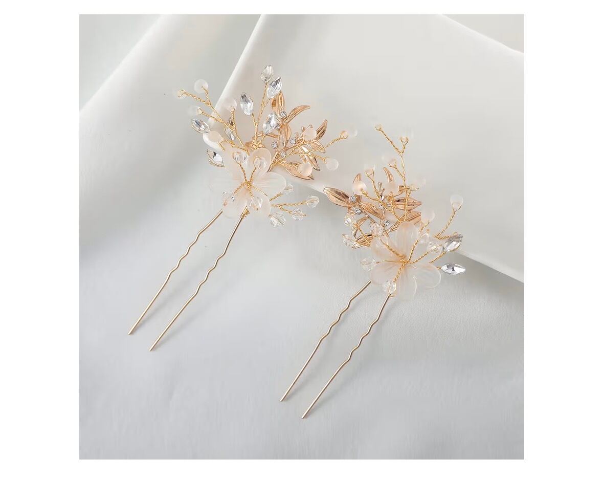 【ヘアアレンジ&使い方色々】丁度いい大きさや上品なデザインでドレスや雰囲気にあわせて、自由に付ける位置をかえることで、気楽に様々なヘアアレンジに対応できます。また、使い方法も色々で単品で使ったり、セットで使ったり、お手持ちのピンと組み合わせたり…とアレンジができるので、シーンに合わせて幅広いお洒落が楽しめます。