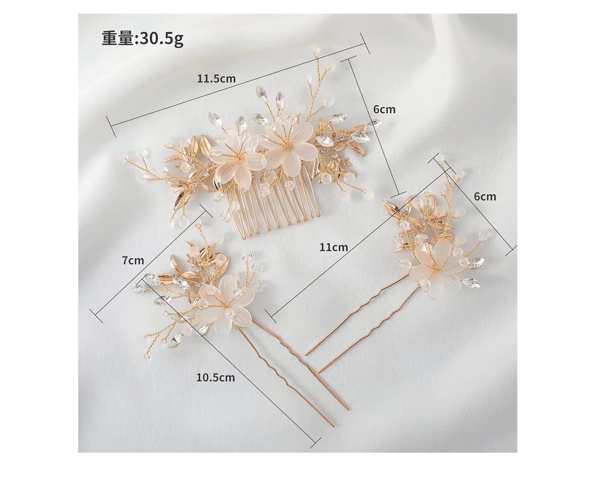 髪飾り ヘッドドレス コーム Uピン 3点セット 花嫁 ヘアアクセサリー 手作り ウェディングヘッドドレス 結婚式 披露宴 二次会 発表会 卒業式 入学式 パーティー 和装用髪飾り ヘアアクセサリー(タイプ1)