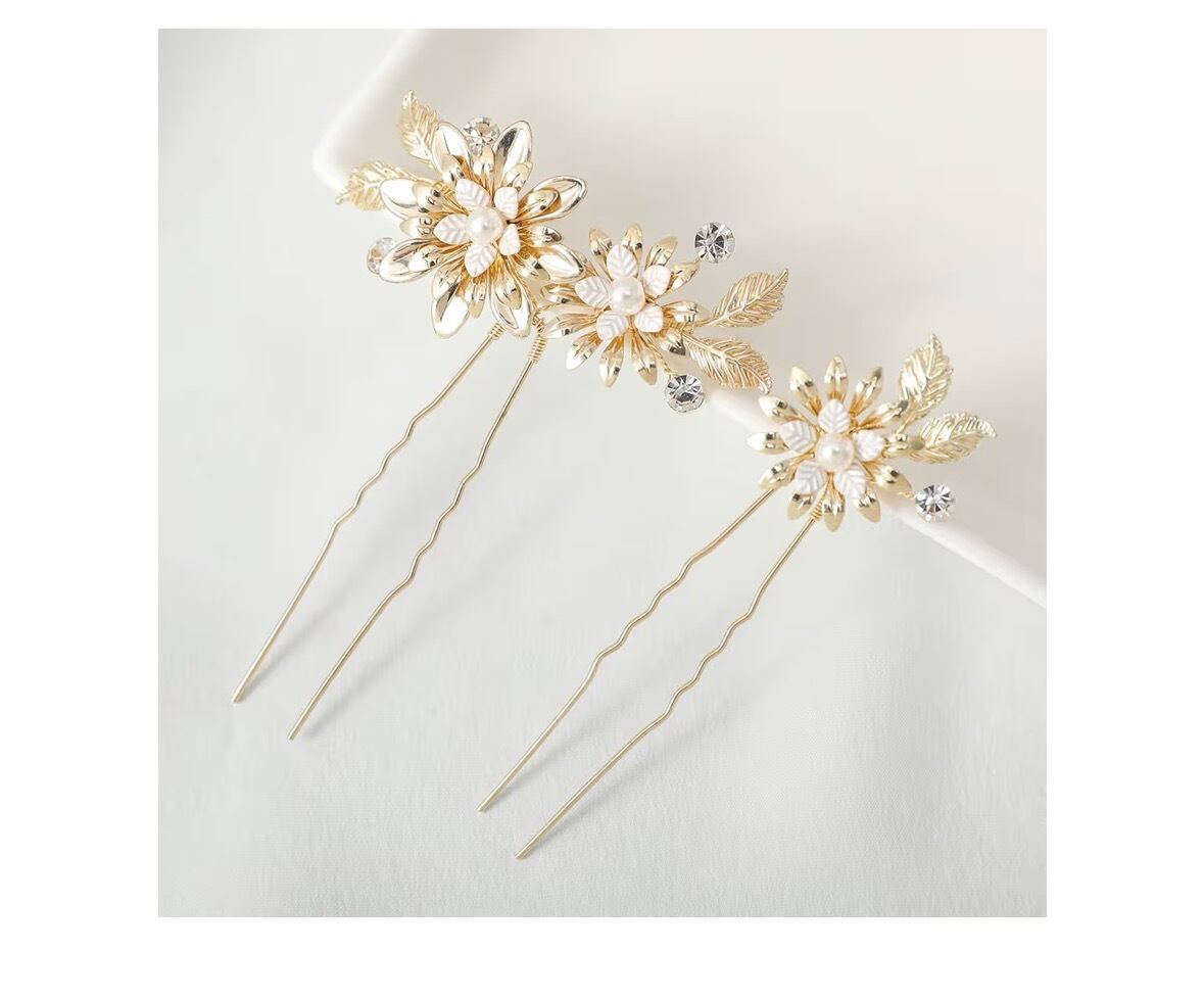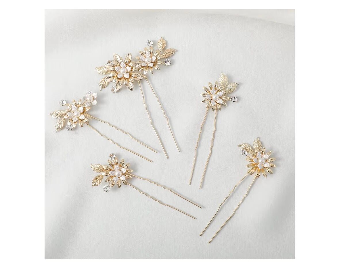 髪飾り ヘッドドレス 花モチーフ パールUピン 5点セット 花嫁 ヘアアクセサリー 手作り ウェディング フラワー 結婚式 披露宴 二次会 発表会 卒業式 入学式 パーティー 和装用髪飾り ヘアアクセサリー(タイプ6)