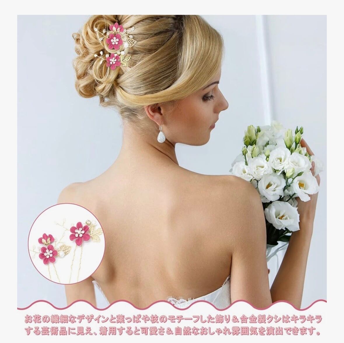「装着が快適」-ヘアピンを髪の中に挿し込むだけで操作簡単です。ヘアアクセサリーは合金素材を採用し、錆びにくいです。しかも本体が軽くて、頭につけるのは気持ち良くて、一日中つけても落ちません。