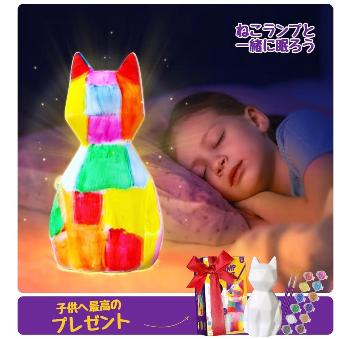 夜のわが家に、小さな相棒。世界にひとつの「お絵描き猫ランプ」描ける 猫ランプ お絵描きセット 工作キット 手作りキット 動物ランプ 子供 メイキングトイ小学生 女の子 男の子 誕生日 人気 プレゼント おもちゃ 夏休み 自由研究