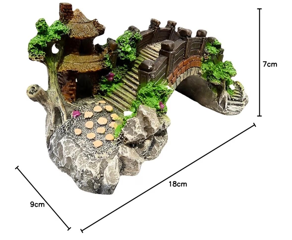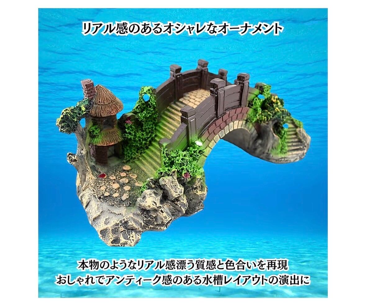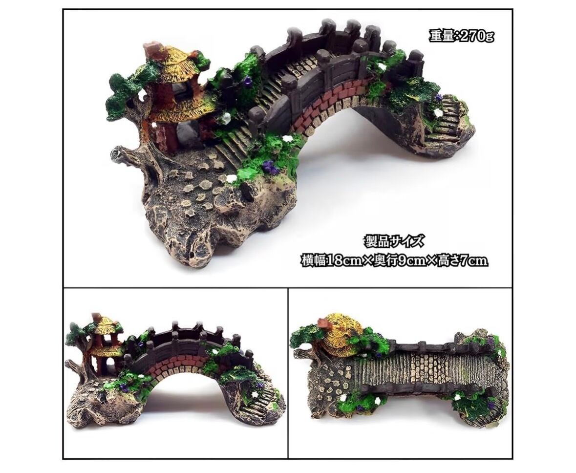 お魚たちの、お気に入りの場所に。アクアリウム 水槽 オブジェ 橋 アーチ 隠れ家 シェルター リアル 和風 日本庭園 (M グリーン)