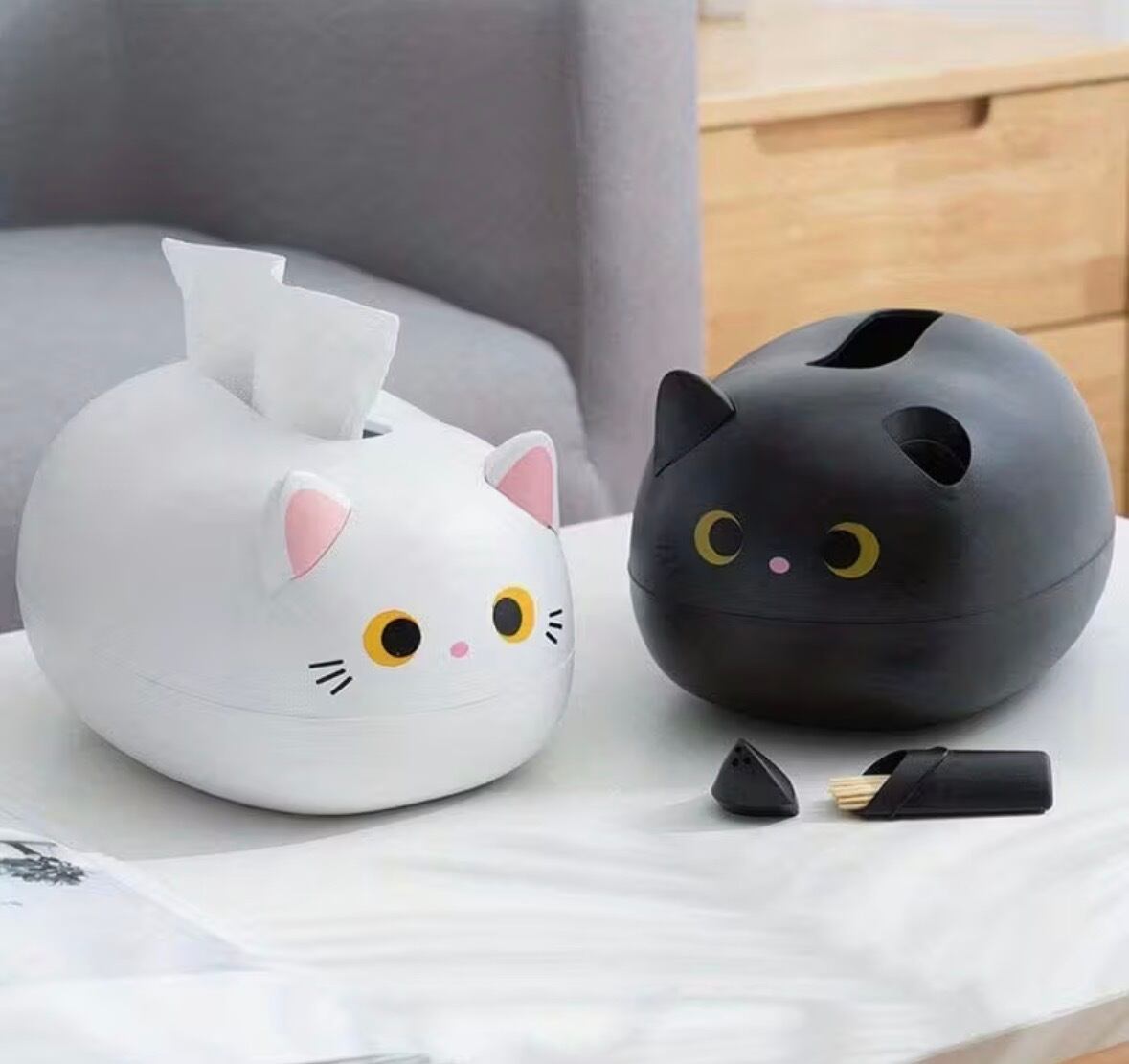 お部屋がもっと可愛くなる!猫型ティッシュケース ブラック、ホワイト
