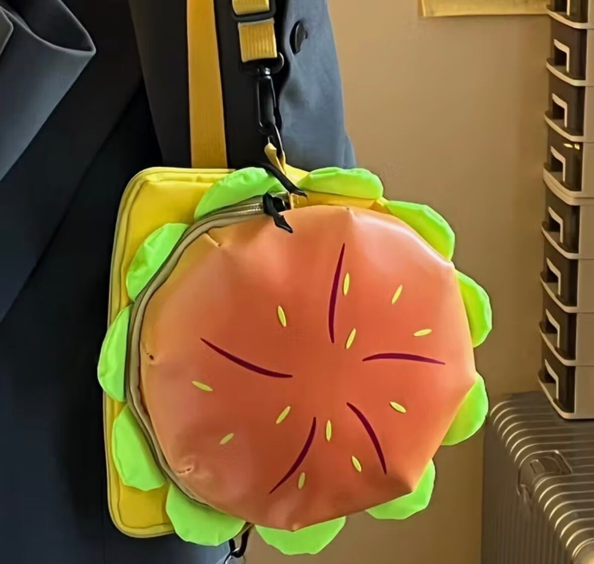 存在感たっぷりのチーズバーガーデザインだけど、シングルショルダー&スラントバッグ(斜め掛け)の2WAY仕様で使いやすさも抜群。