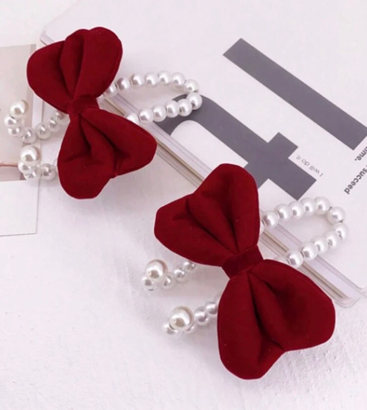 【車内を大人可愛く】リボン&パール アルミ合金製 シートフック 2個セット
