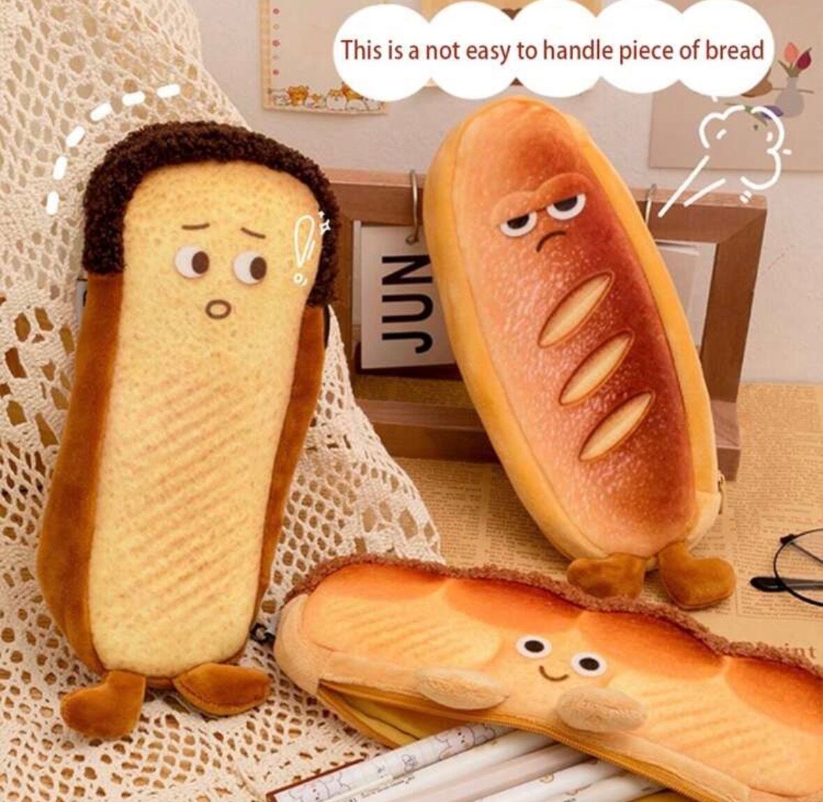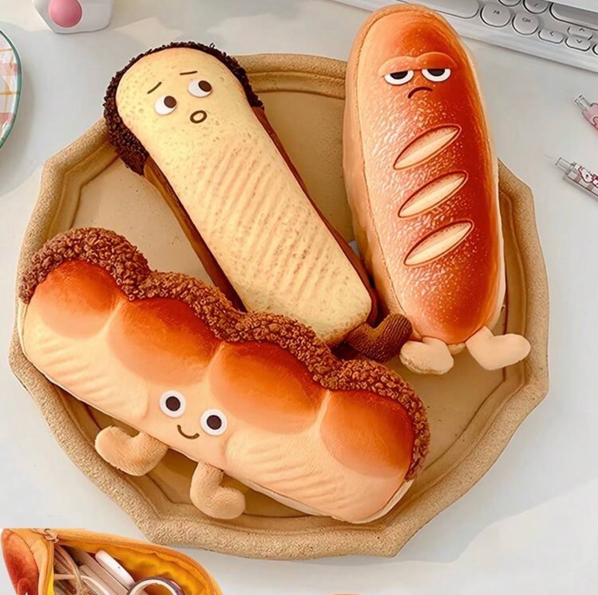 まるで本物のパンのような手触りで、中の文房具や小物を優しく守ります。