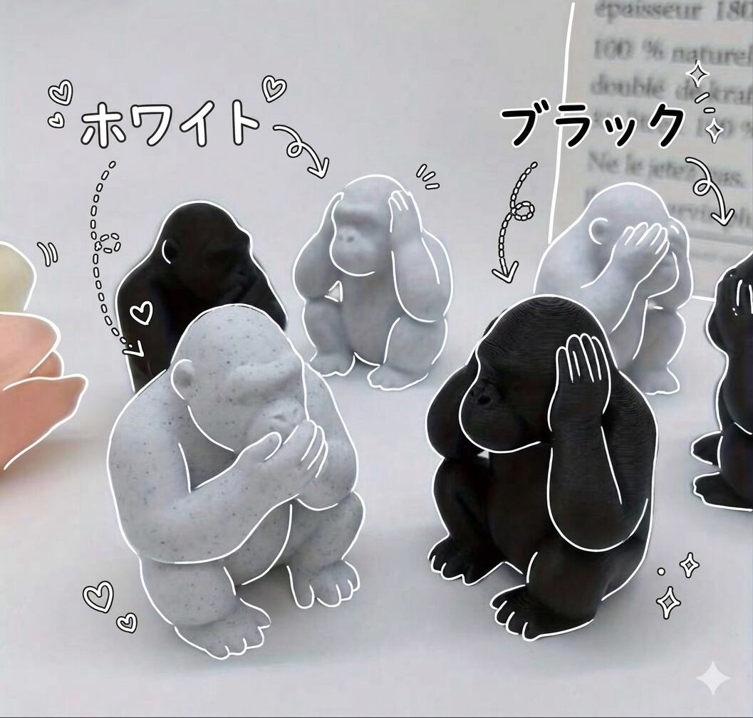 この「見ない・言わない・聞こえない」ゴリラさんの置物は、そんなあなたの代わりに「ちょっとお休み」を体現してくれる、愛すべき相棒たちです。