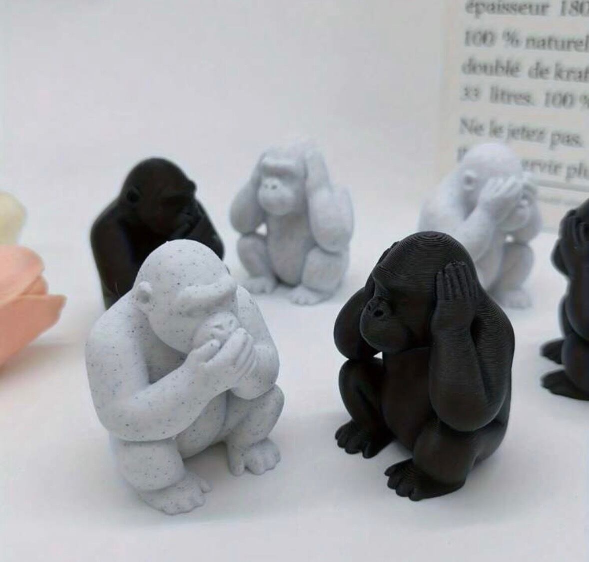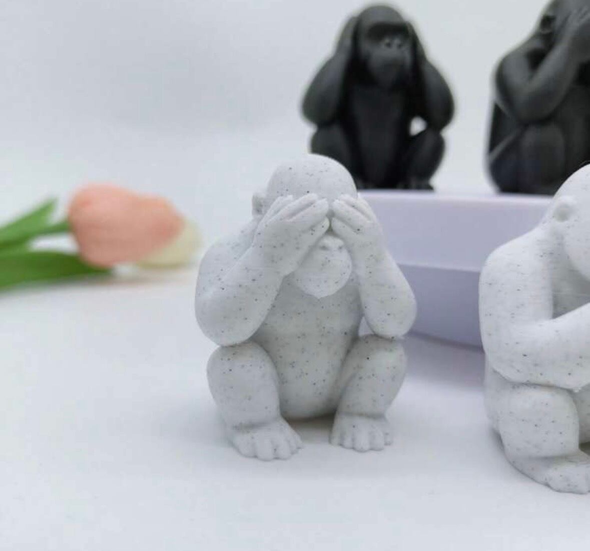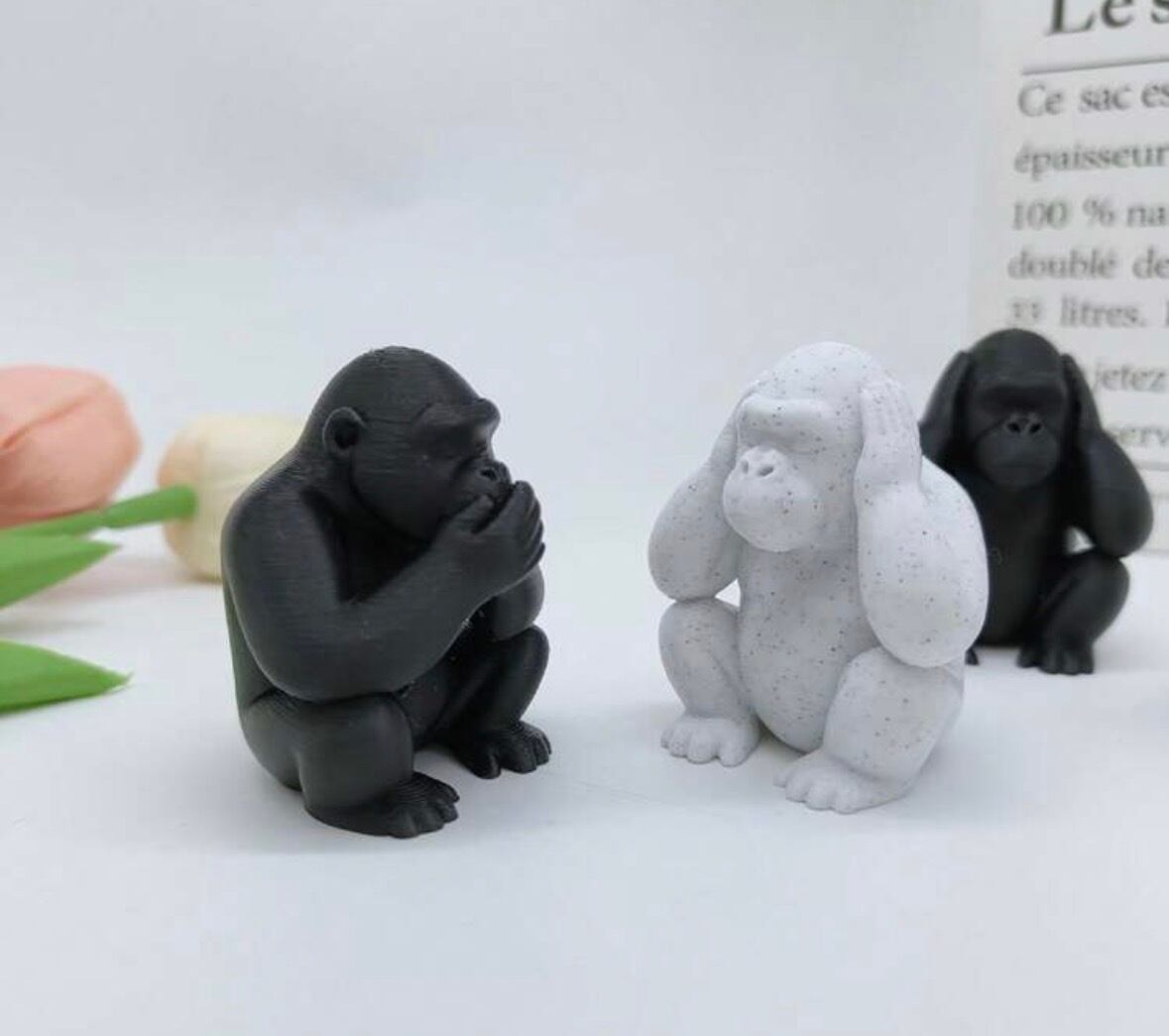自分を労わる、モノトーン・ゴリラさんの三猿セット