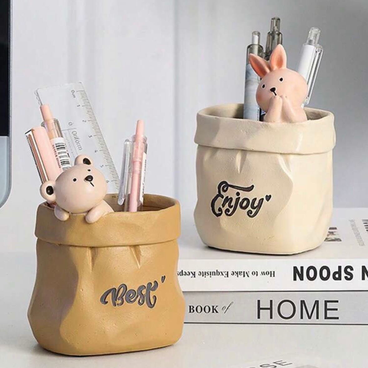 デスクに住む、ちいさな癒やし。「ひょっこり動物のペーパーバッグ風ホルダー」