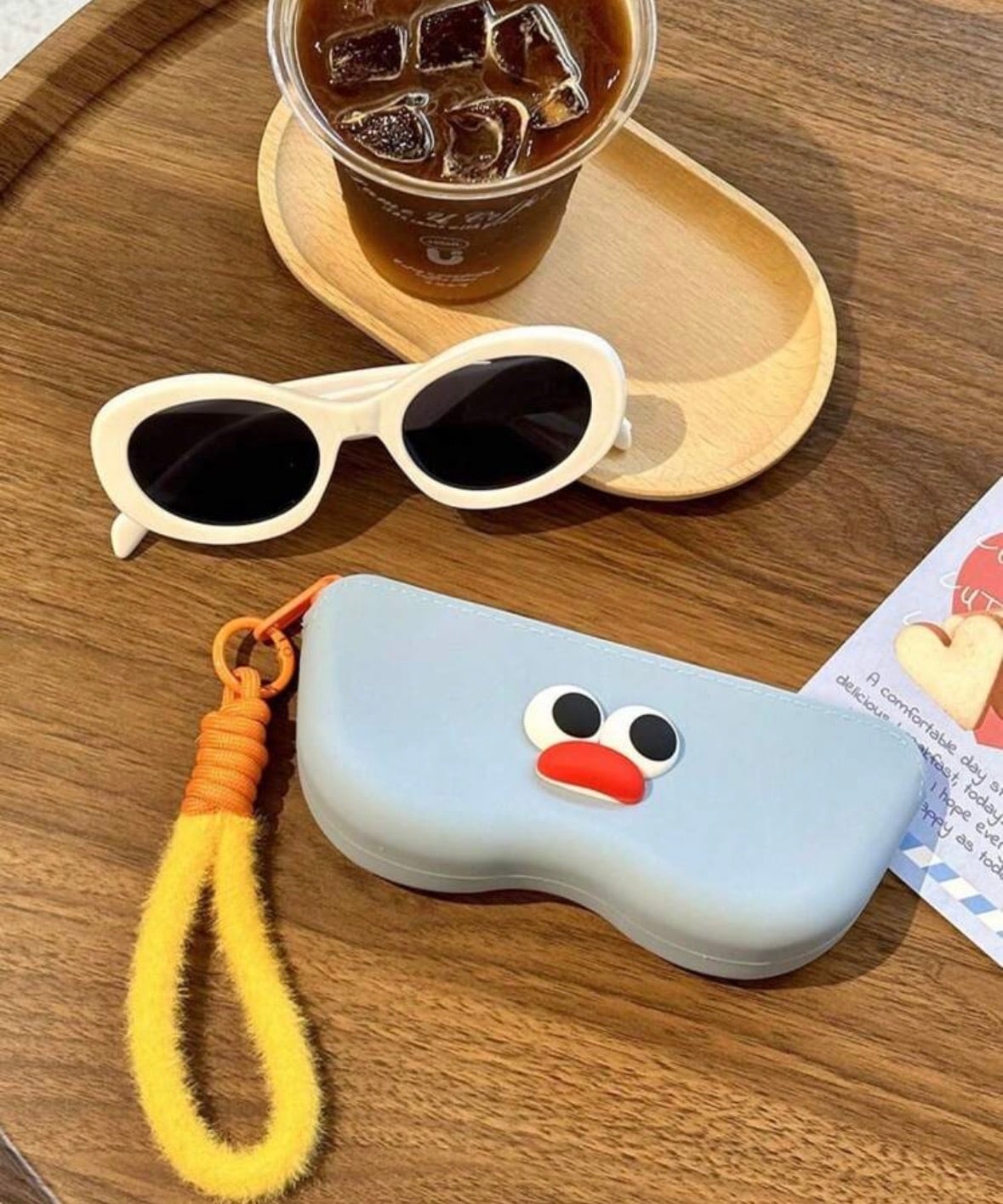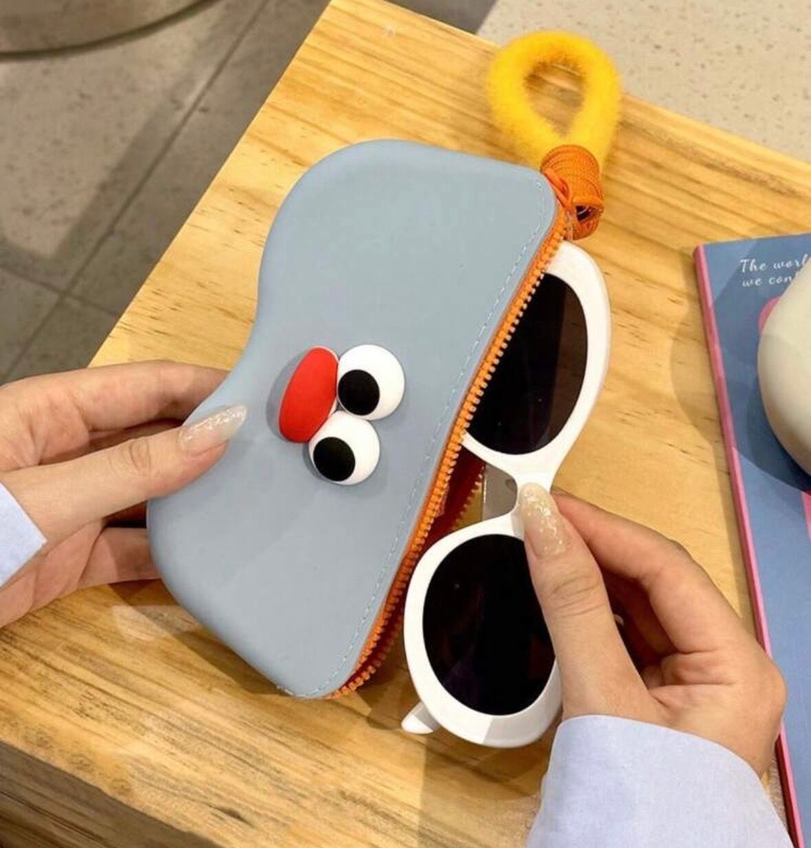 バッグの上の小さな相棒。「キョロ目のシリコンメガネポーチ」